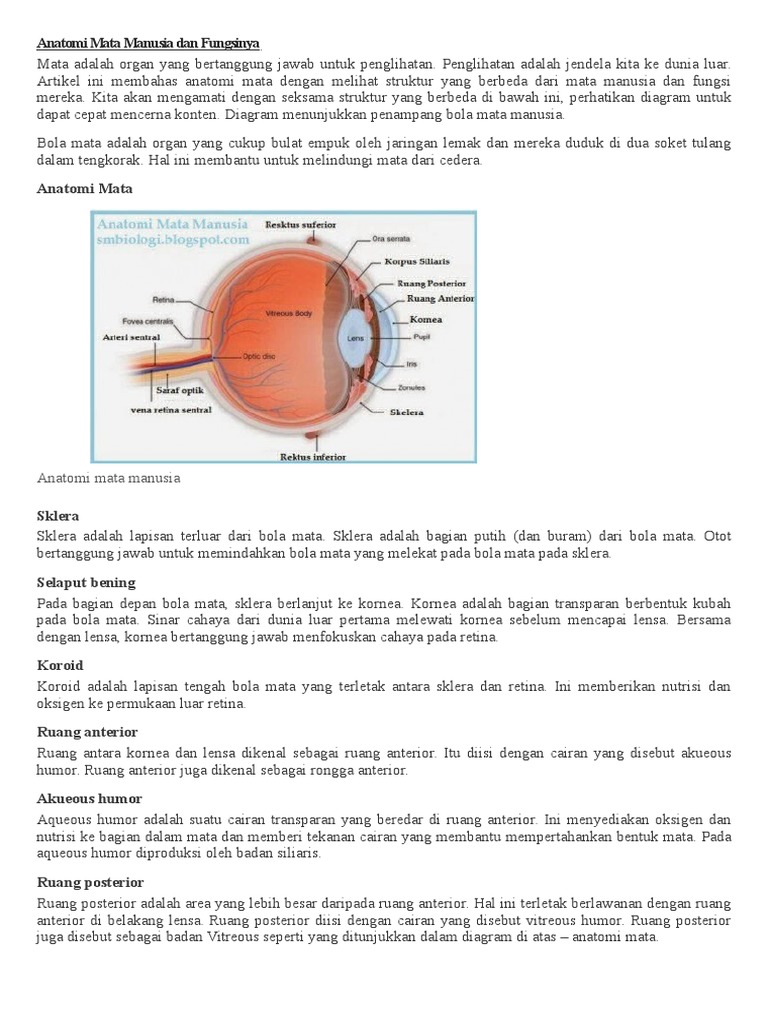 Anatomi Mata Manusia Dan Fungsinya