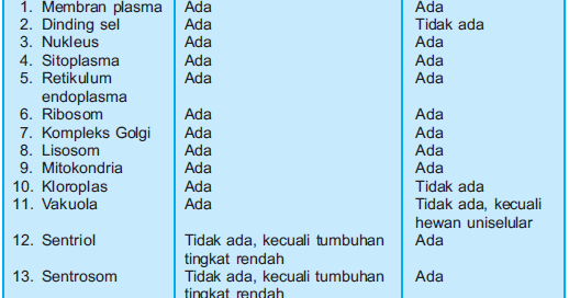 Tabel Perbedaan Sel Tumbuhan Dan Sel Hewan Abimuda