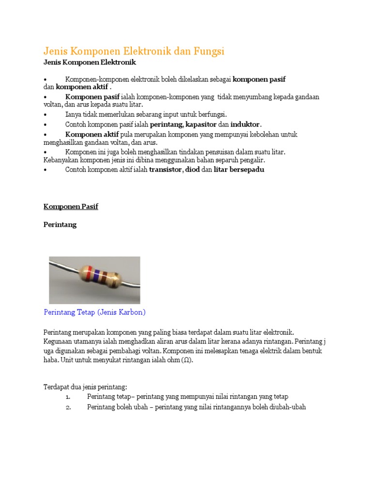 Teknologi Elektronik Jenis Komponen Elektronik Dan Fungsi