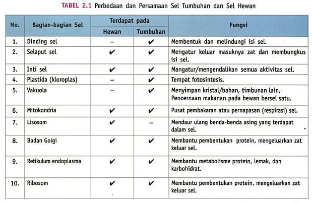 Perbedaan Sel Hewan Dan Sel Tumbuhan Pada Tabel