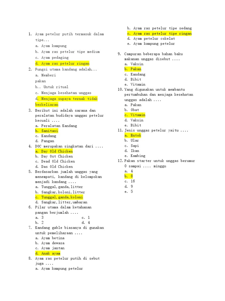 Soal Dan Jawaban Budidaya Unggas Petelur