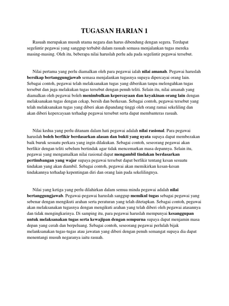 Pendidikan Moral Tugasan Harian Esei Tugasan Harian Moral