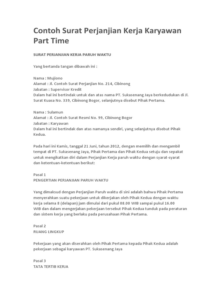 Contoh Surat Perjanjian Kerja