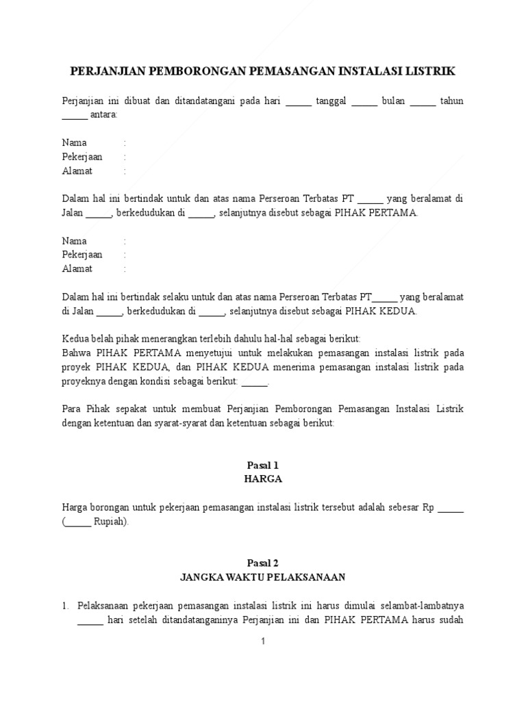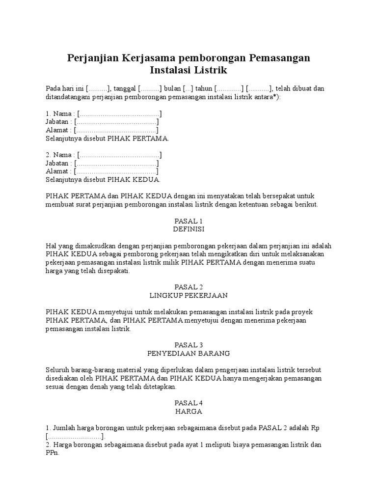 Contoh Kontrak Pekerjaan Instalasi Listrik