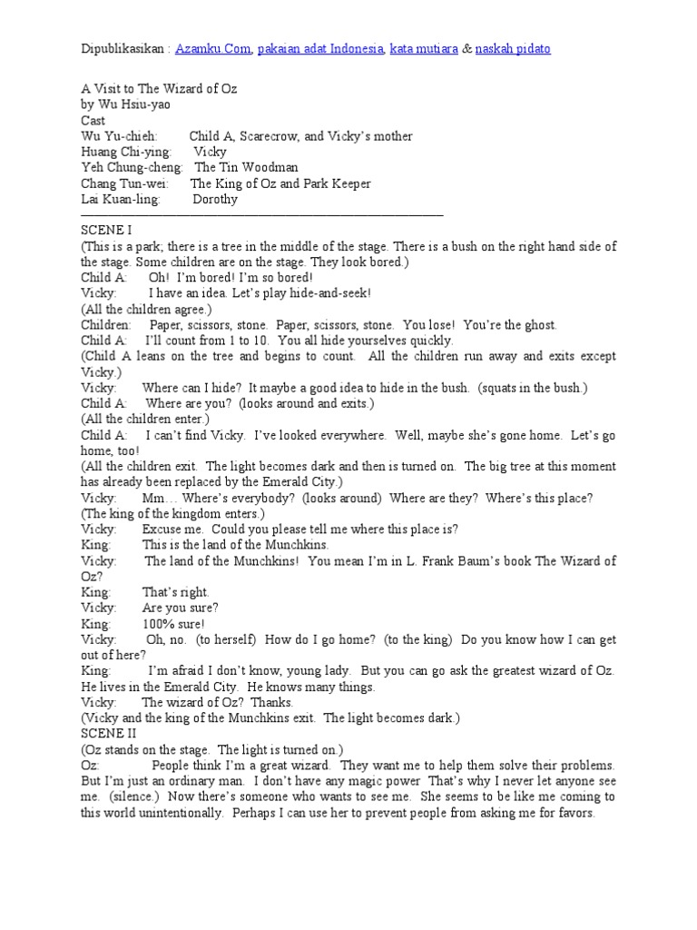 Contoh Naskah Drama Bahasa Inggris 5 Orang Pemain Dorothy Gale