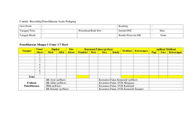 Format Dan Pengisian Data Recording Ternak Unggas Our Akuntansi