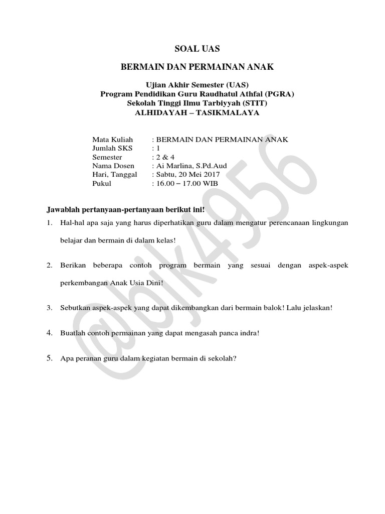 Soal Uas Bermain Dan Permainan Anak Program