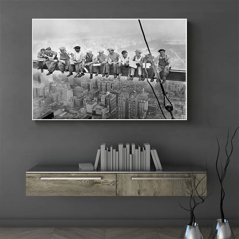 Makan Siang Di Atas Gedung Pencakar Langit Kanvas Lukisan Hitam