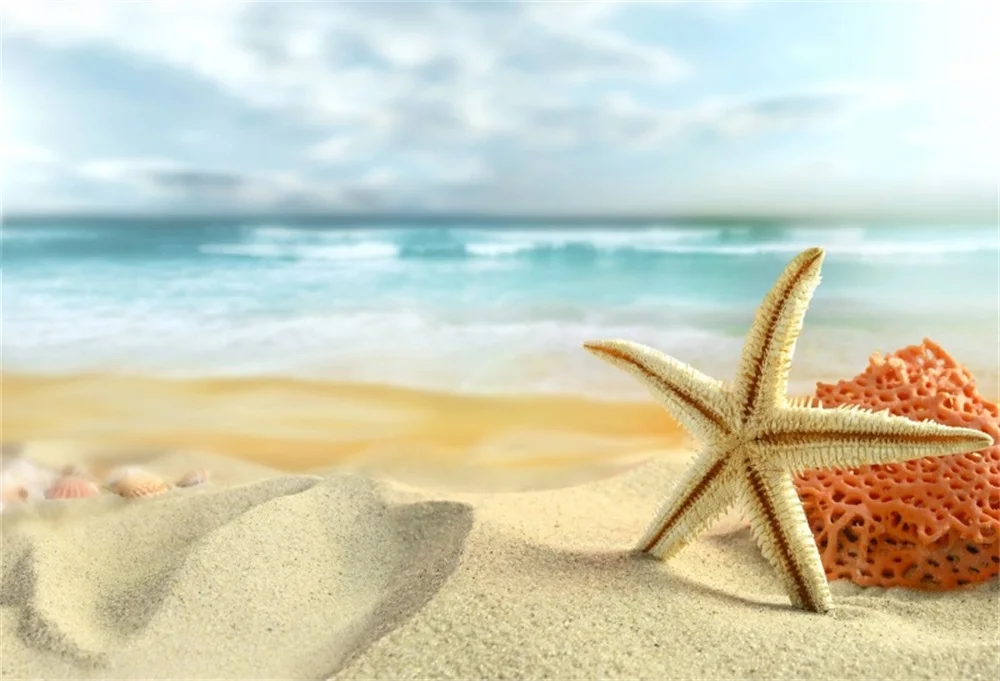 Laeacco Musim Panas Latar Belakang Laut Pasir Pantai Bintang Laut