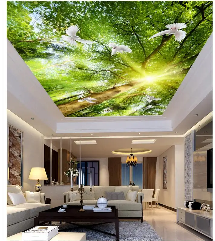 3d Mural Lukisan Pohon Merpati Sinar Matahari Alam Langit Langit