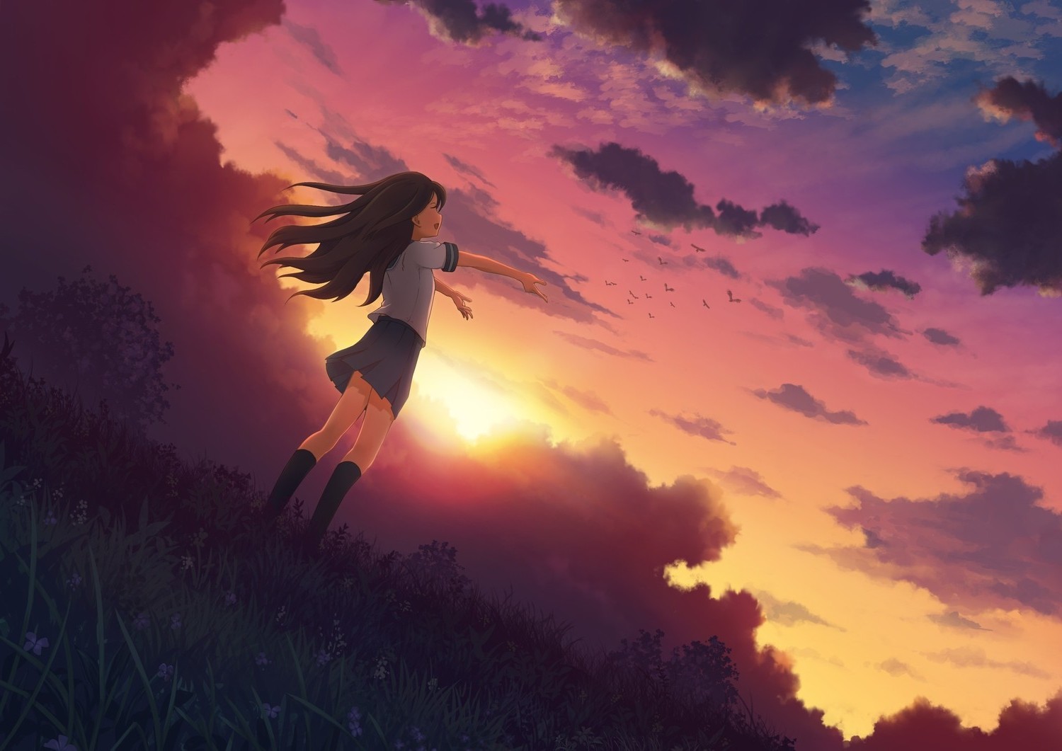 Wallpaper Sinar Matahari Matahari Terbenam Anime Bayangan