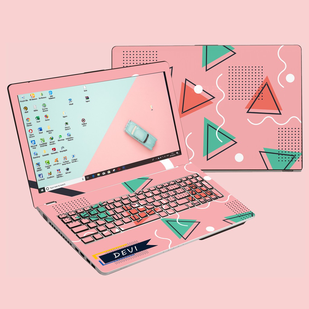 Promo Garskin Laptop Pink Geometric Custom Nama Full Body Untuk