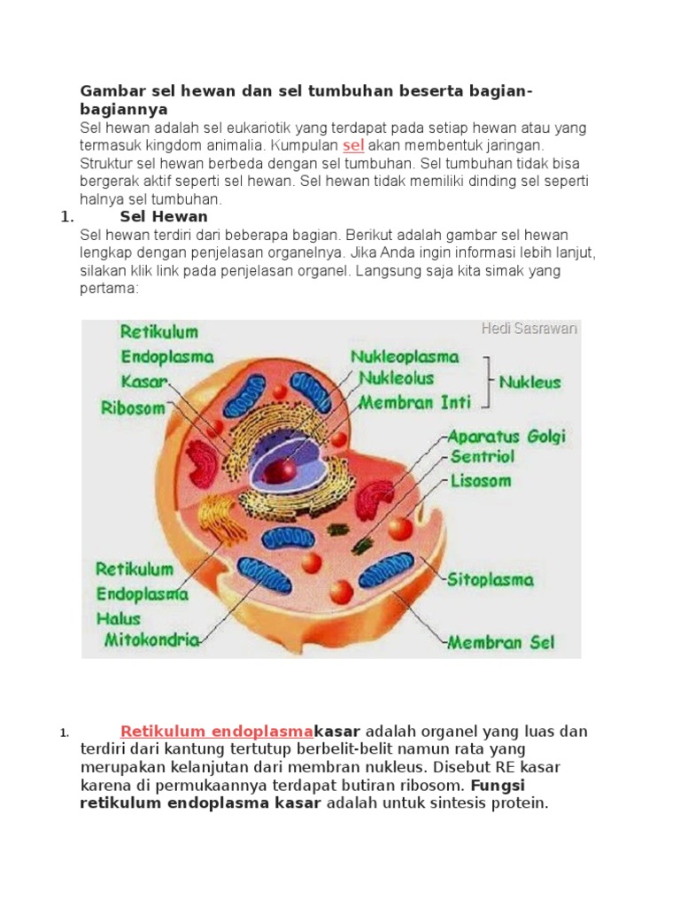 Gambar Sel Hewan Dan Sel Tumbuhan Beserta Bagian