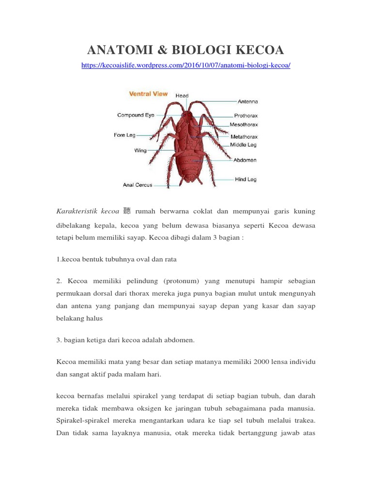 Anatomi Struktur Internal Dan Eksternal Lengkap Dari Kecoak