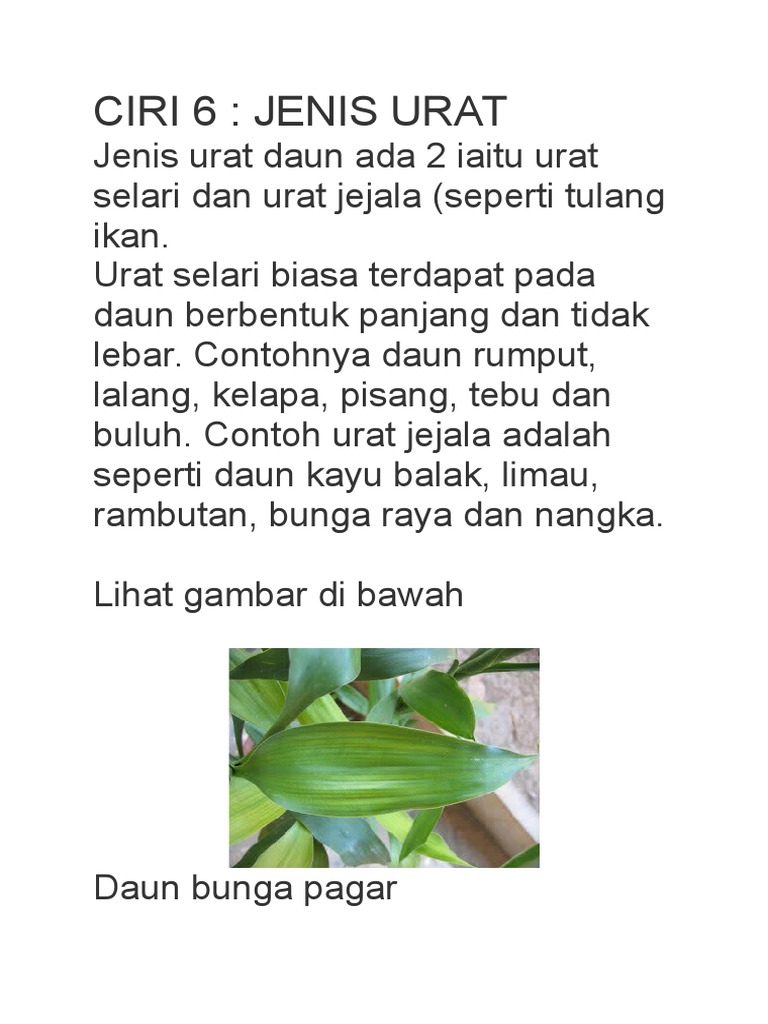 Pembelajaran Sains Tumbuhan Melalui Internet Ciri 6 Jenis Urat