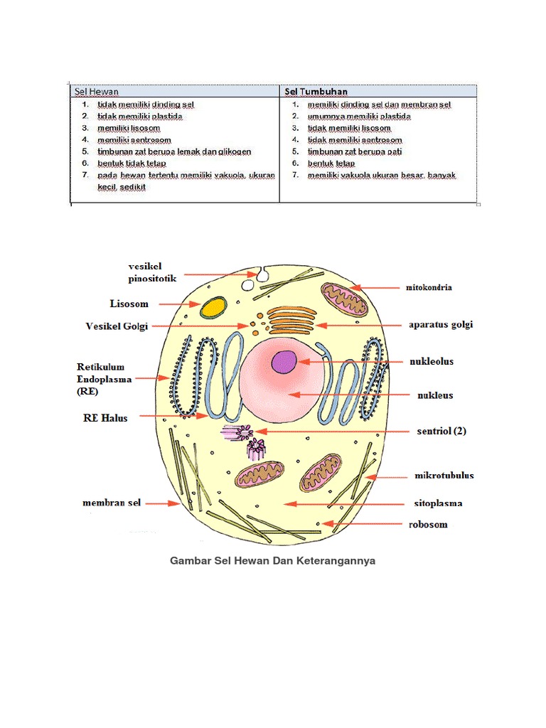 Perbedaan Sel Hewan Dan Sel Tumbuhan Dalam Bentuk Tabel Gambar