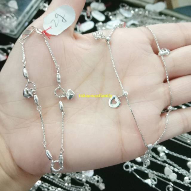 Gelang Rantai Emas Putih Seling Love Kadar 375 Shopee Indonesia