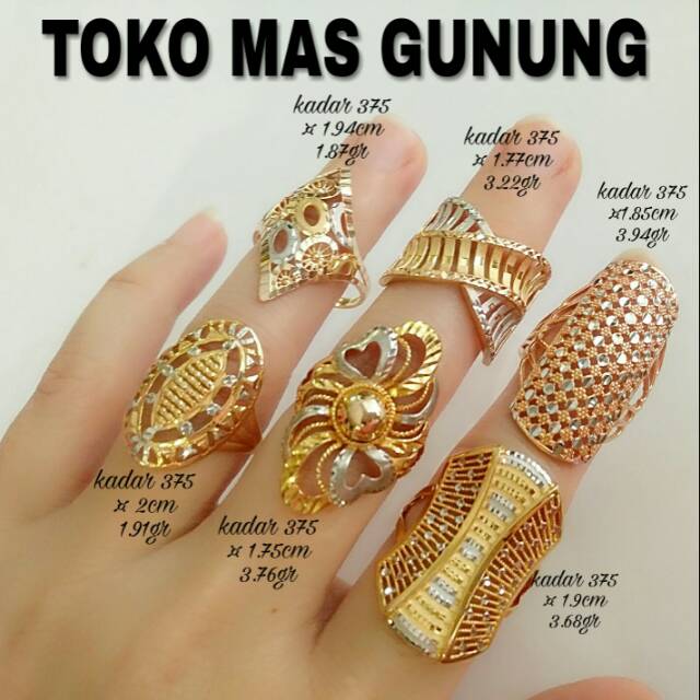 100 garansi uang kembali jika. Cincin fashion diamond look 37 5 berat. Kalung emas new italy santa perhiasan kadar 375 new stok rp1 030 000. Cincin fashion kadar 375 telunjuk ring 15 1 44gr tengah ring 12 1 92gr manis ring 14 1 65gr 100 perhiasan baru.