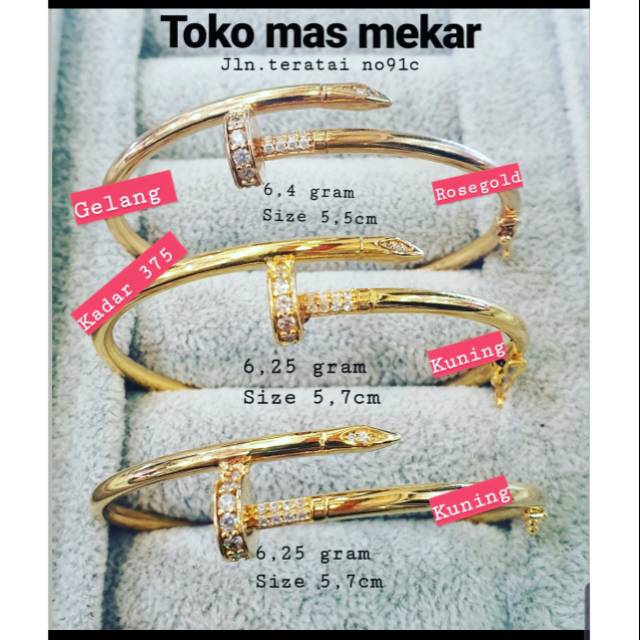 Gelang Emas Cartier Berat Ringan 3 Gram Kadar 375 Shopee Indonesia