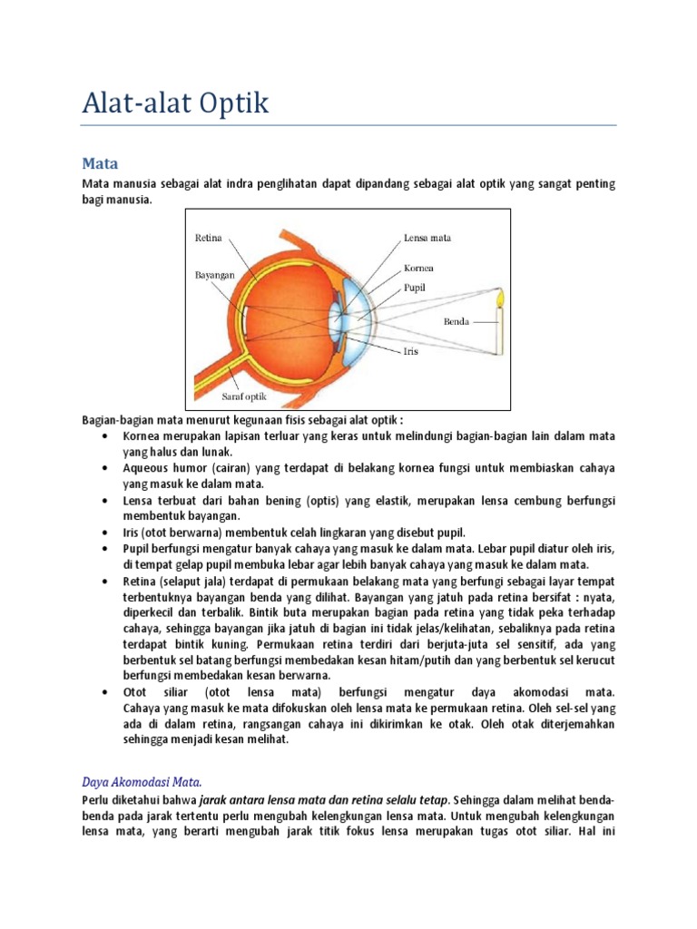 Organ Mata Manusia Sebagai Alat Optik Dan Kelainan Pada Mata