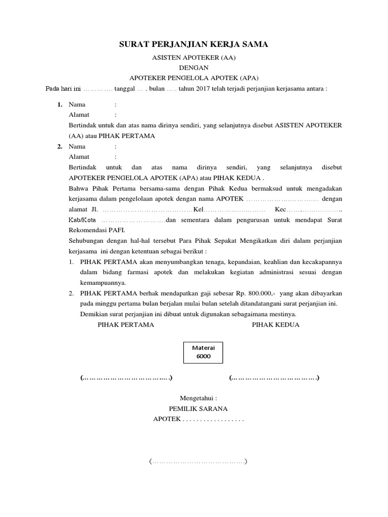 Contoh Surat Kontrak Kerja Asisten Apoteker Backup Gambar
