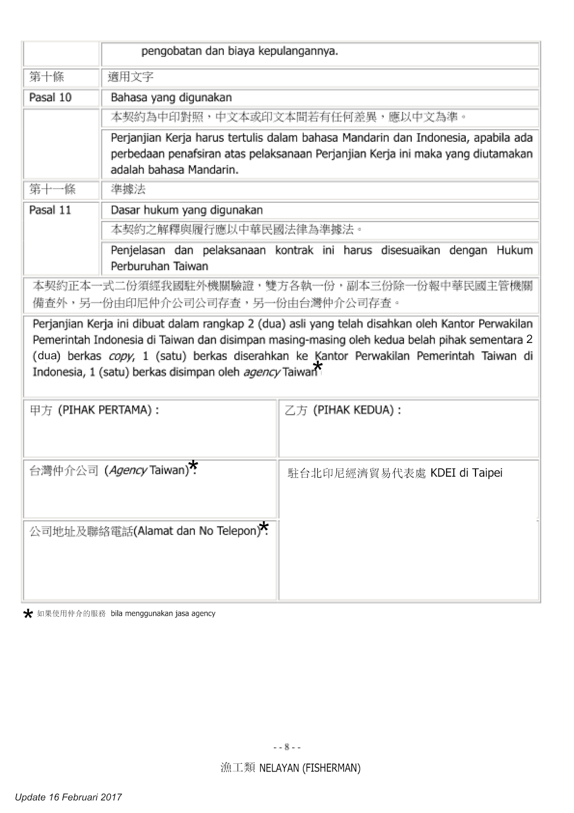 Kontrak ini tertulis dalam bahasa mandarin dan indonesia apabila ada perbedaan maka yang diutamakan adalah bahasa mandarin. Karena itu sebaiknya perusahaan kamu membuat kontrak pkwt dalam bahasa indonesia sekalipun mempekerjakan karyawan asing. Perjanjian kerja ini dibuat dalam 2 dua berkas asli yang telah disahkan oleh kantor perwakilan pemerintah indonesia di taiwan dan disimpan masing masing oleh kedua belah pihak sementara 3 tiga berkas copy 1 satu. 8 jenis surat dalam bahasa mandarin type of letters in chinese.