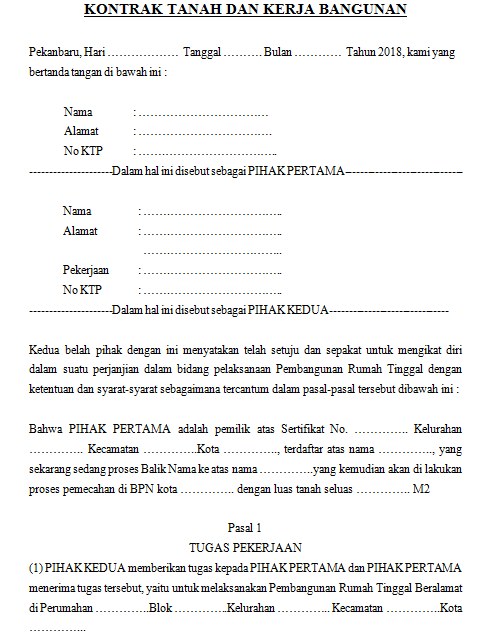 Contoh Kontrak Kerja Antara Pemborong Dengan