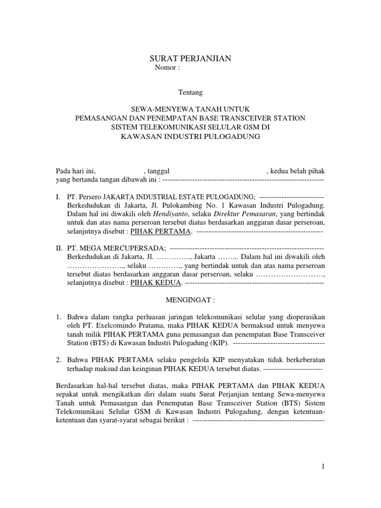 Surat Perjanjian Sewa Menyewa Tanah Untuk Bts Pt