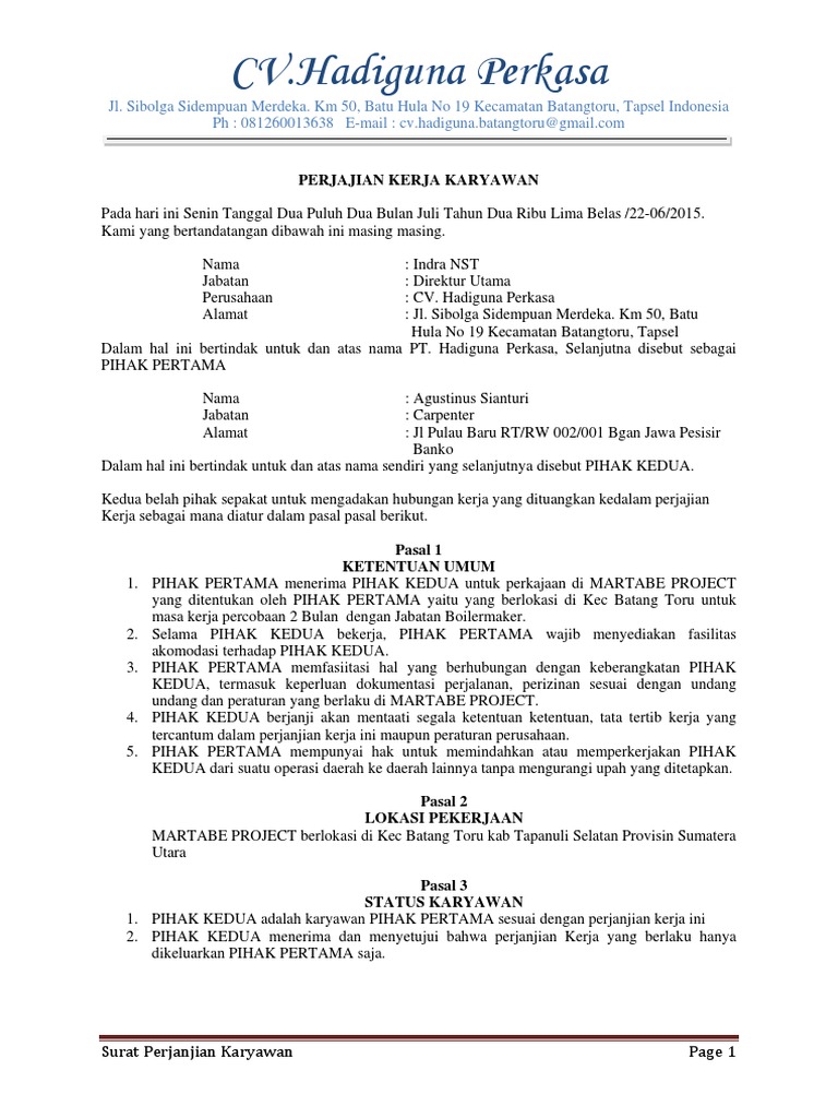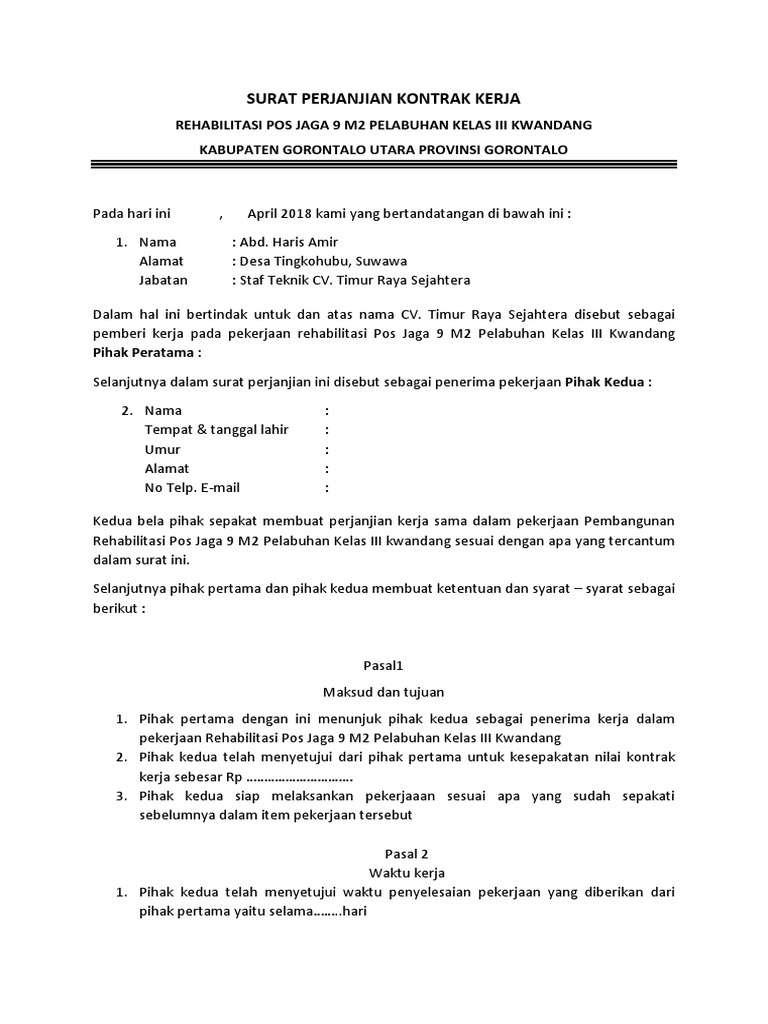 Surat 2 Perjanjian Kerja Kontrak Surat Perjanjian Kerja Kontrak Surat Tanda Tanggal
