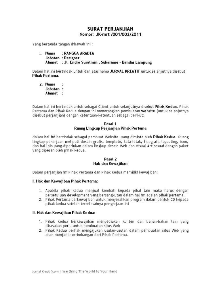 My Perfect Template Contoh Kontrak Kerja Desain Grafis