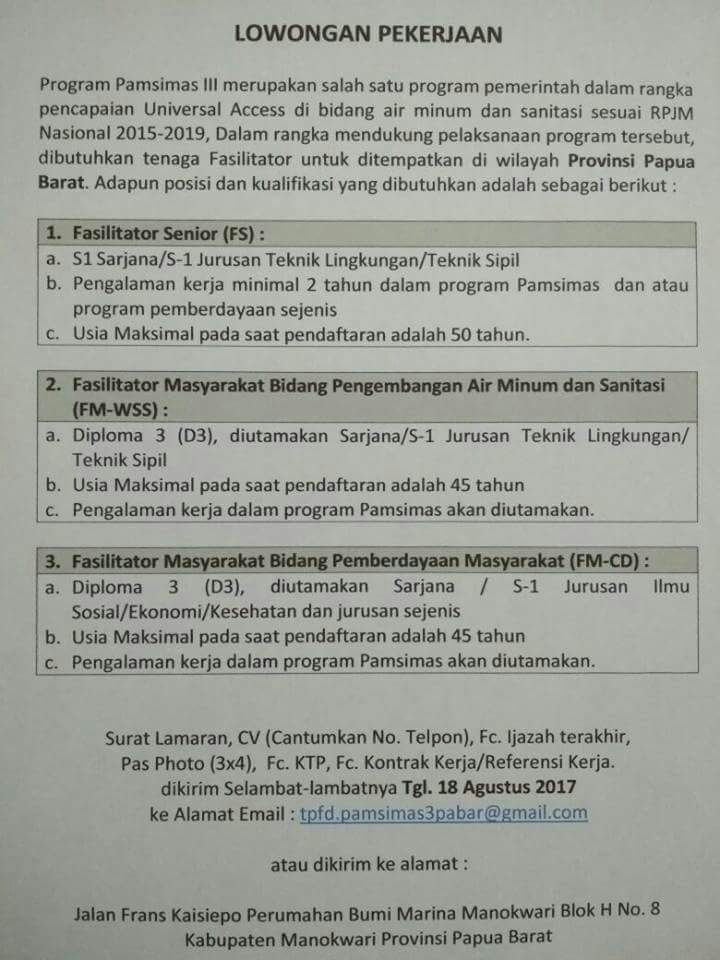 Http Pamsimas Org Konten Lowongan Pengumuman Iklan Loker Pamsimas Oktober 20191 Pdf