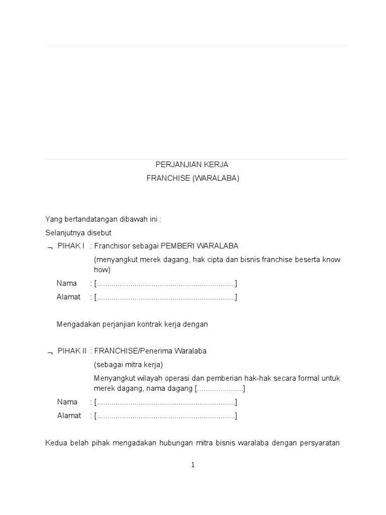 Contoh Surat Perjanjian Franchise Atau Waralaba Yang Baik Dan