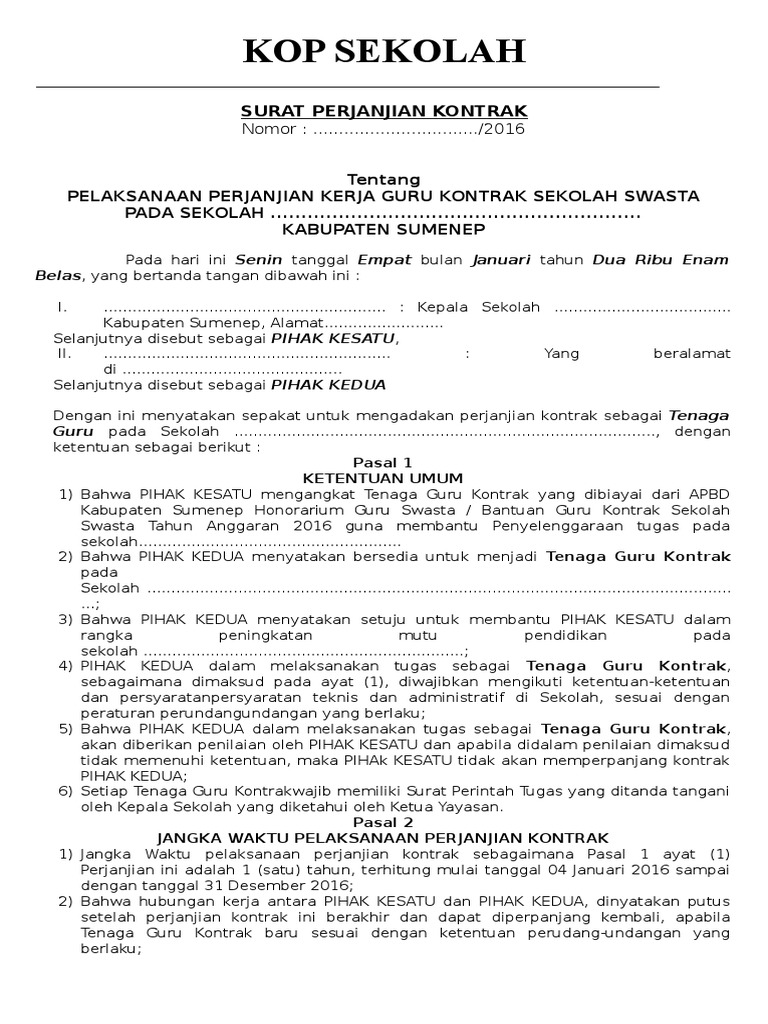 Surat Kontrak Kerja Guru Honorer Sd Guru Loyal