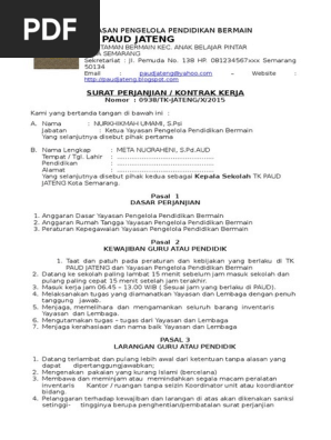 Surat Kontrak Kerja Tenaga Pendidik Kependidikan Paud Terbaru