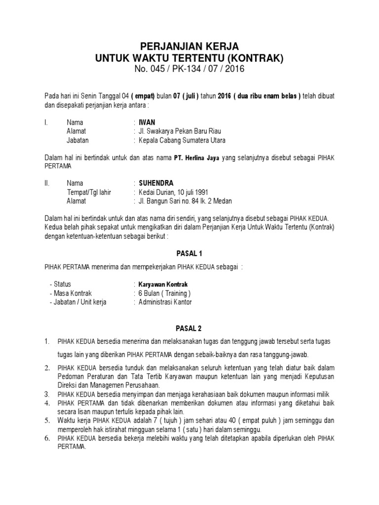 Contoh Kontrak Kerja Karyawan Yang Sesuai Peraturan Di Indonesia