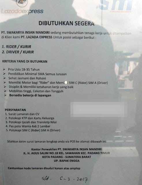 Lowongan Kerja Lazada Express Cabang Padang Ditutup 6 Maret 2017