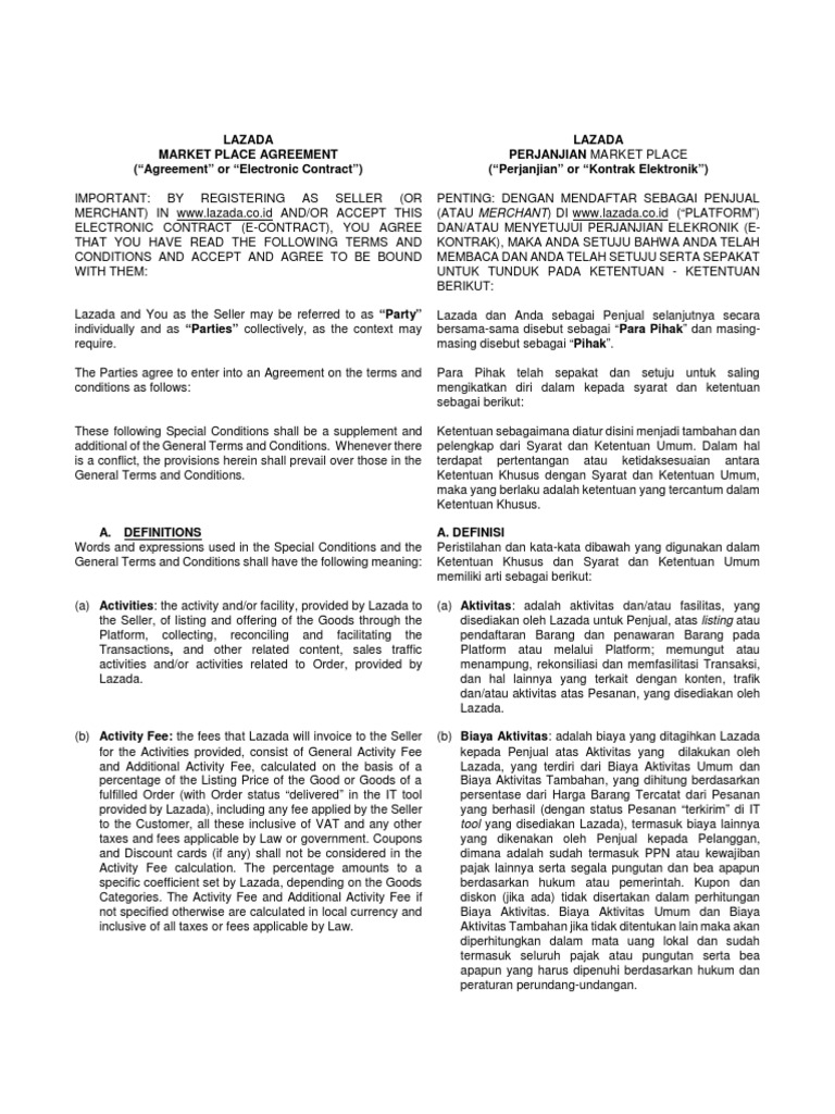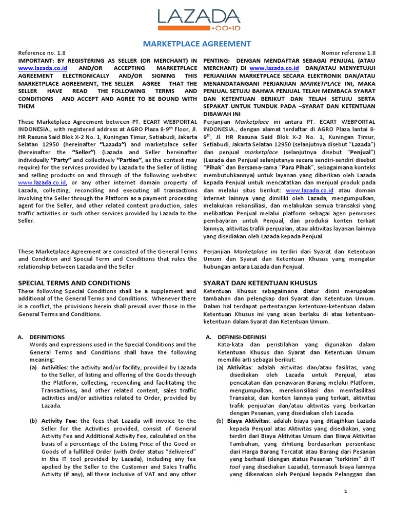 Kontrak Marketplace Lazada Indonesia 2018 Pdf