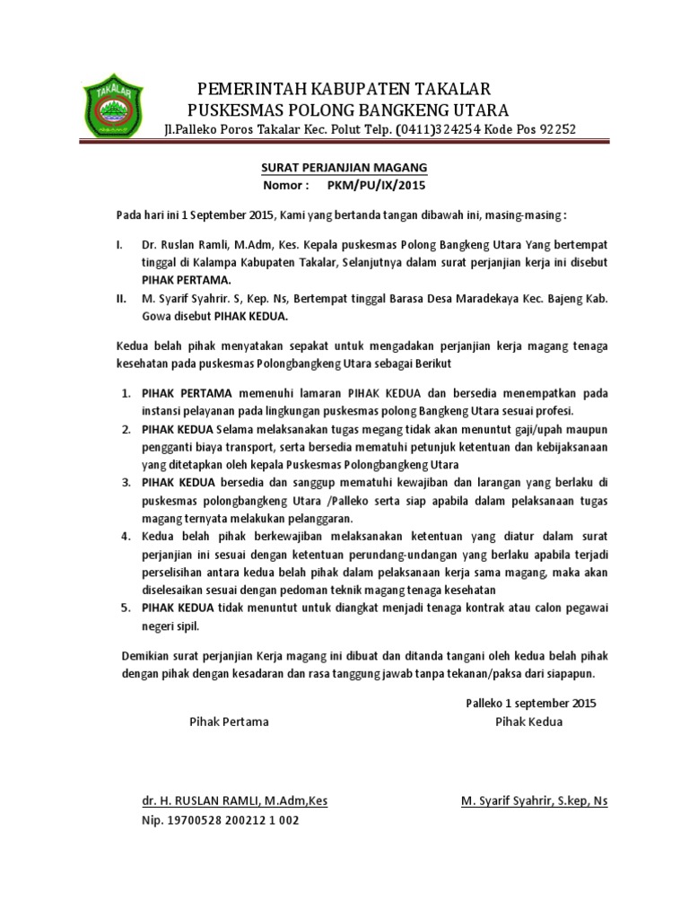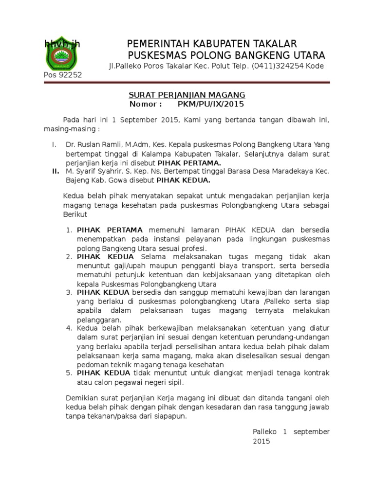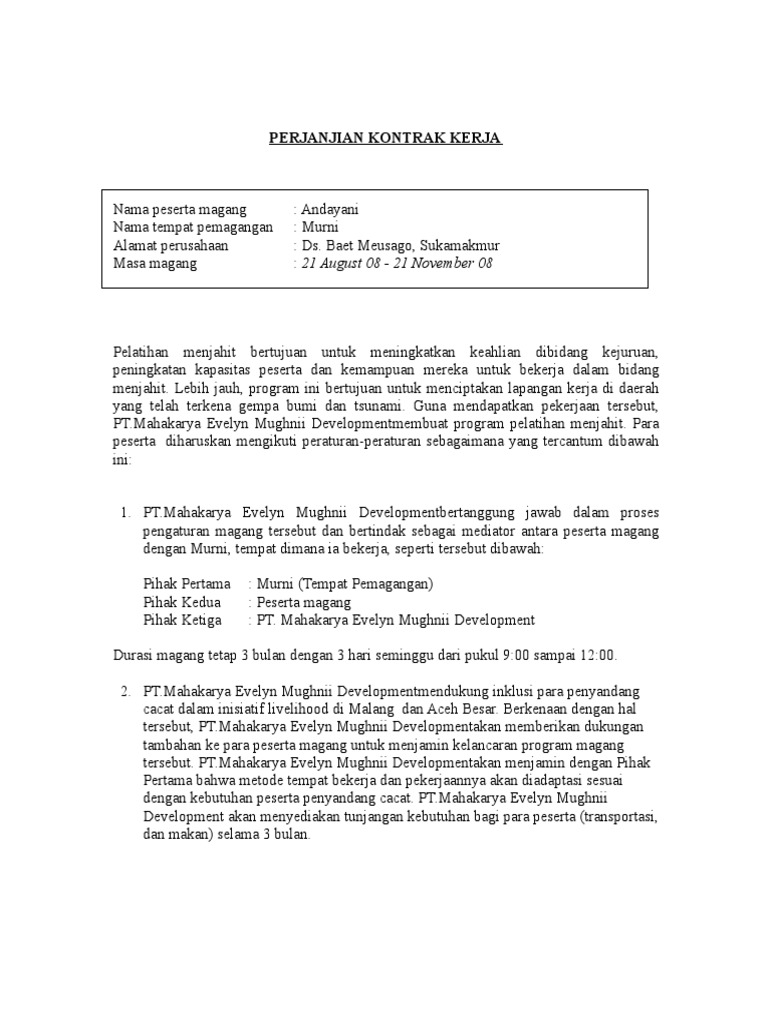 Contoh Surat Perjanjian Magang Di Perusahaan