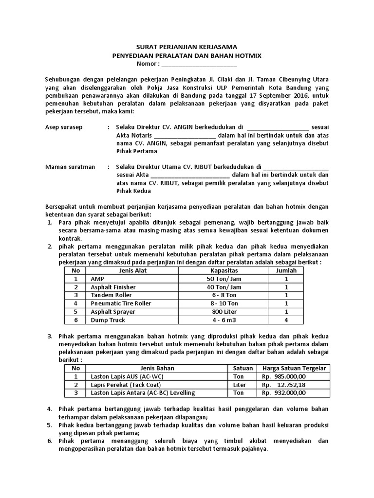 Contoh Kontrak Kerja Antara Pemborong Dengan