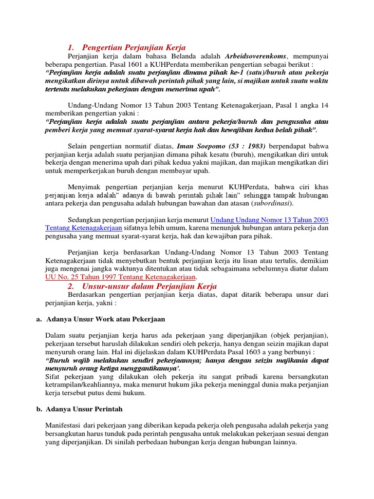 Kontrak Kerja Menurut Uu No 13 Tahun 2003
