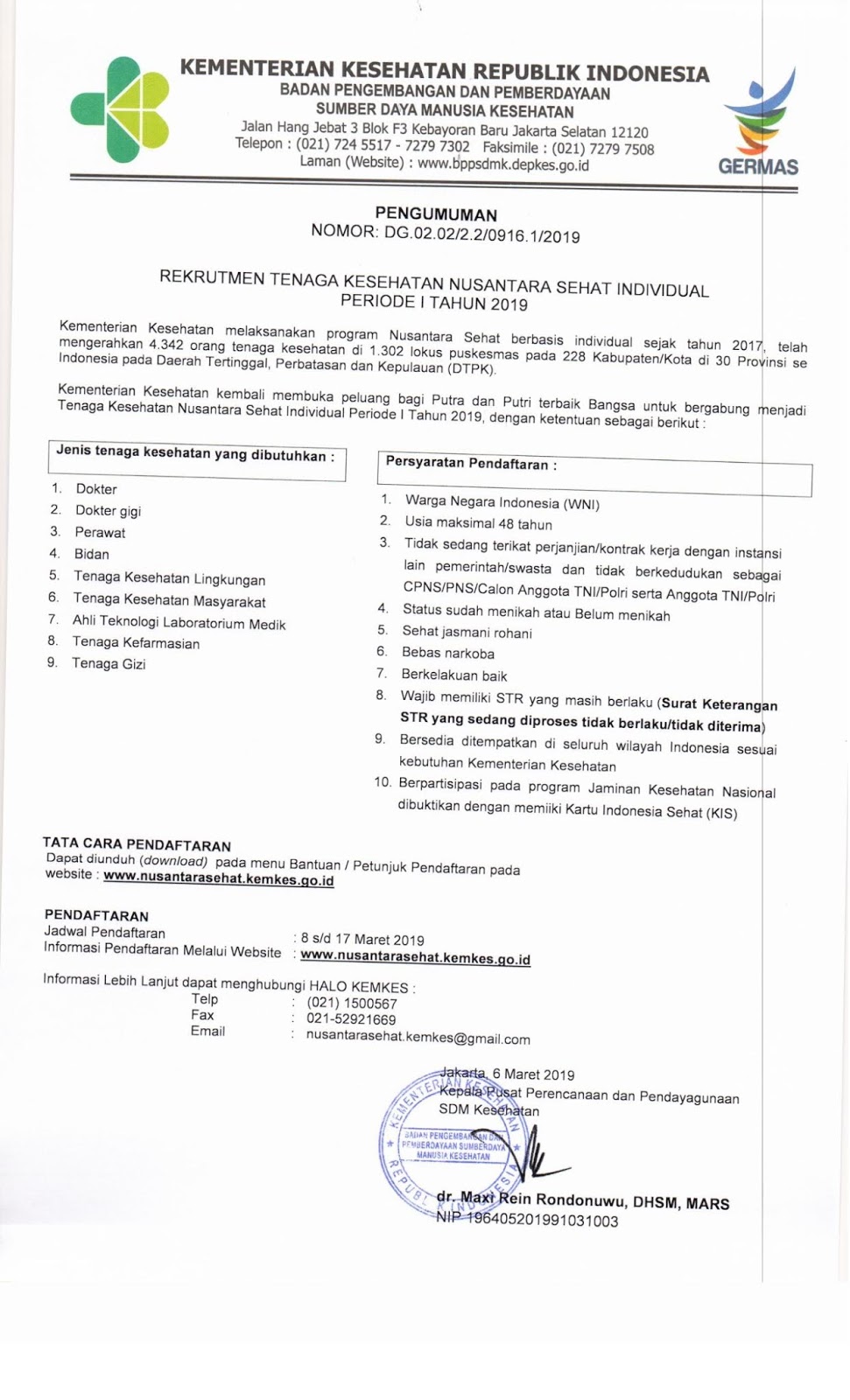Rekrutmen Tenaga Kesehatan Nusantara Sehat Periode I Tahun 2019