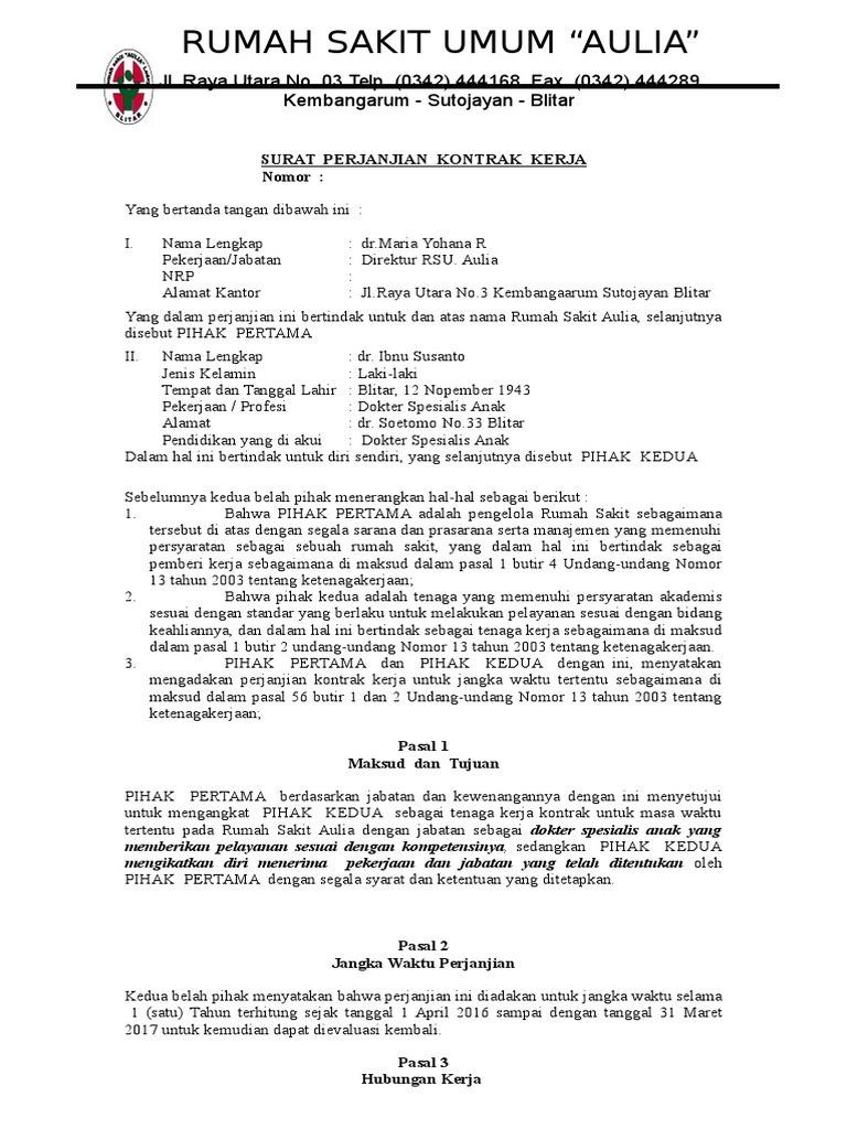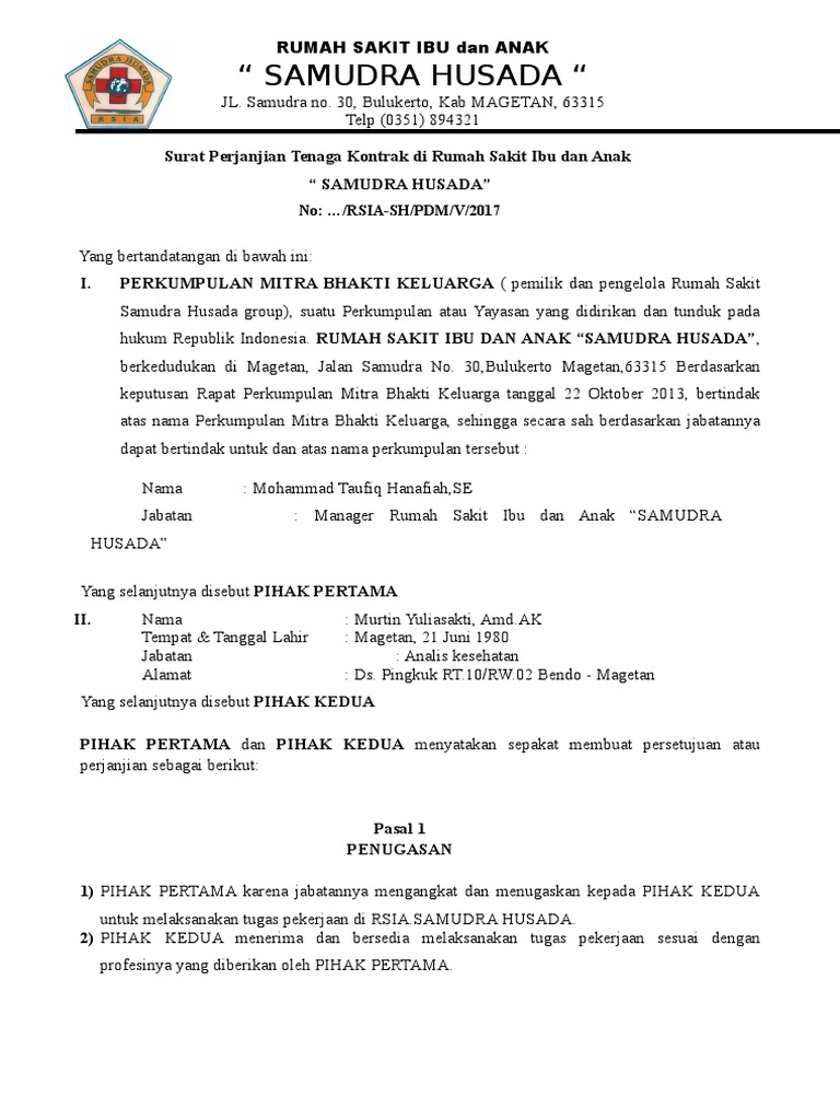 Doc Surat Perjanjian Kerja Untuk Waktu Tertentu Saraja Setjo