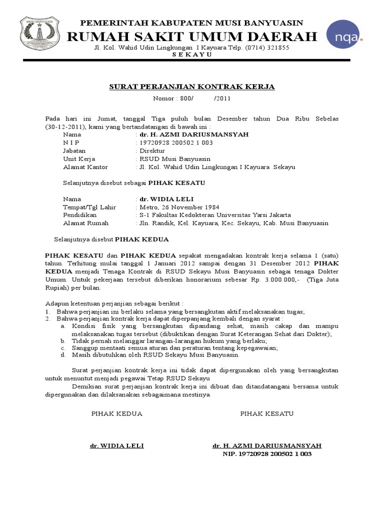 Surat Perjanjian Kontrak Kerja Nurul Lusiana