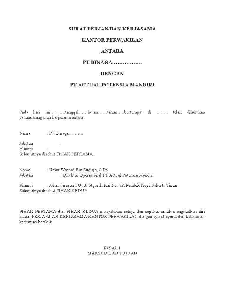 Surat Perjanjian Kerjasama Sales