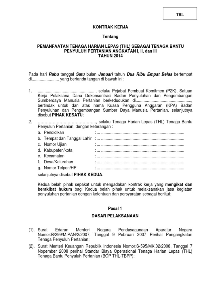 Kontrak Kerja Thl Tb Pp 2014 Thl