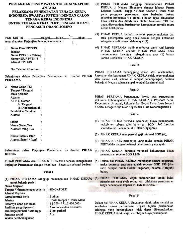 Maju Makmur Perjanjian Penempatan Tki Singapura