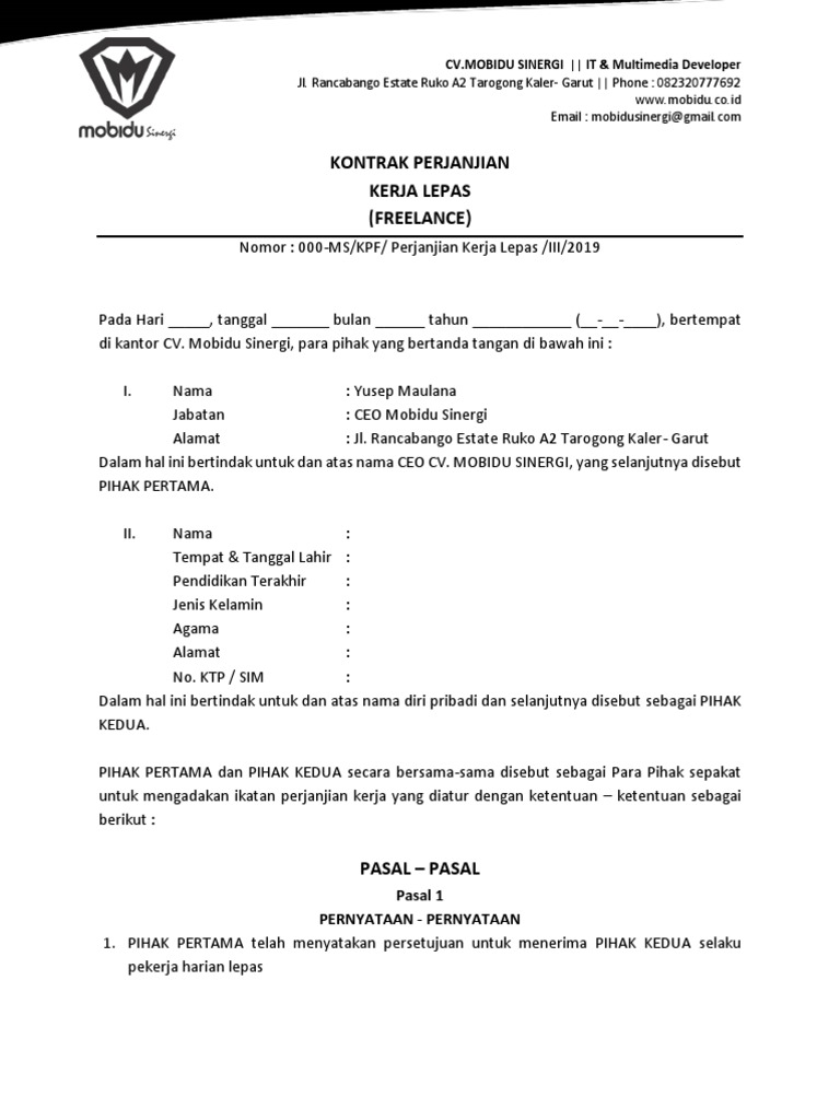 Kontrak kerja untuk freelance. Hari sabtu yang lalu 23 3 saya dan teman teman kompasianer hadir dalam acara yang digagas kursor kompasiana untuk komunitas. Beberapa pekerjaan jenis ini antara lain untuk editor buku proofreader hingga editor untuk beberapa media online. Klien meminta pekerja freelance untuk dibuatkan website. Beberapa hal yang harus diperhatikan ketika membuat kontrak kerja freelance adalah sebagai berikut.