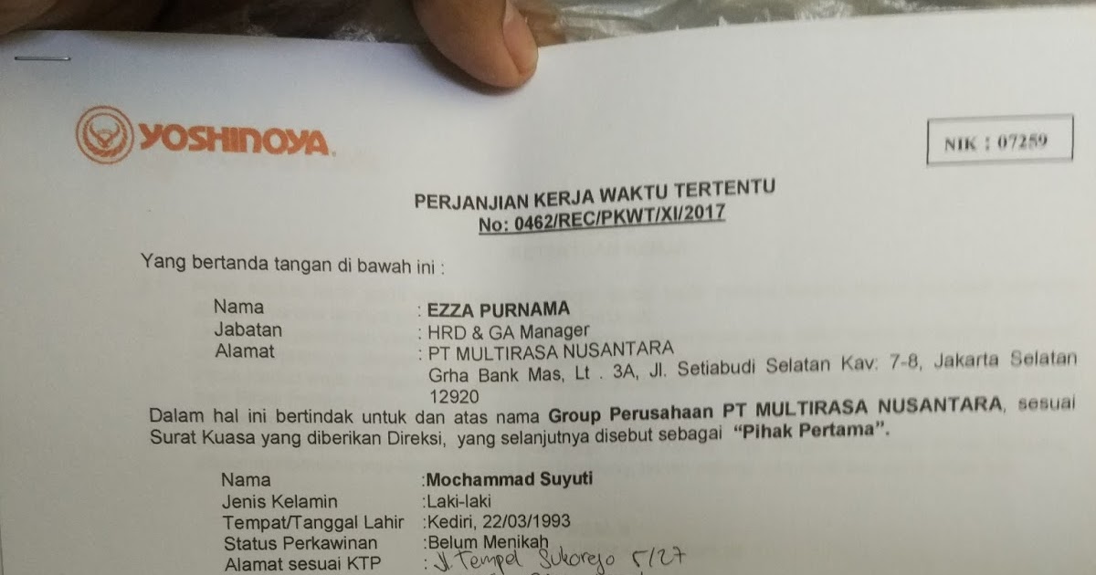Kontrak Kerja Yoshinoya
