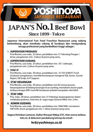 Lowongan Kerja Pt Multirasa Nusantara Yoshinoya Japanese
