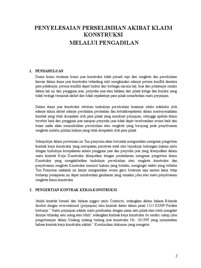 Pdf Masalah Sengketa Dalam Penyelenggaraan Jasa Konstruksi
